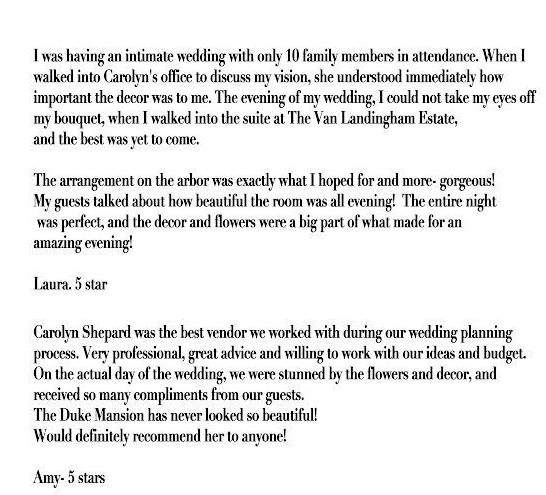 Planning a wedding or special event should feel exciting—not overwhelming. At Carolyn Shepard Weddings and Event Design, our focus is on creating beautiful, personalized celebrations that truly reflect you. Whether you’re envisioning an intimate gathering or a large, elegant event, we’re here to help bring it all together in a way that feels seamless, thoughtful, and uniquely yours.